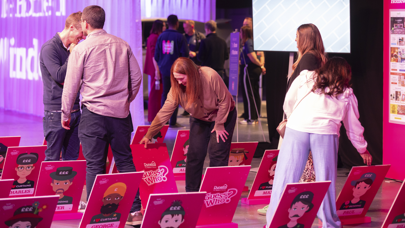 The conference culminated in a lively evening experience designed to strengthen connections and celebrate the team. Alongside a live band and DJ, delegates were invited to dive into larger than life activations including personalised, life size Guess Who?, a giant snakes and ladders game, and a Dunelm themed fun house ball pit. These interactive moments created genuine joy and camaraderie—deepening colleague relationships and building stronger emotional affinity with the Dunelm brand.